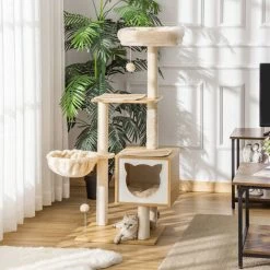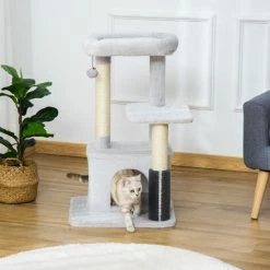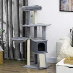 PawHut Arbre à Chat Poteau à Griffer L40 X L 34 X H 230-260 Cm 5 Niveaux D’activités Gris