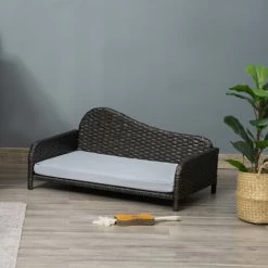 PawHut Canapé/lit Pour Chien/chat Canapé Animaux Avec Accoudoir Et Dossier 69x49x38cm – Gris