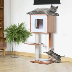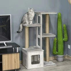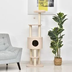 PawHut Arbre à Chats Avec Griffoir Niche Poteaux Peluche Haute Densité 45L X 40L X 148H Cm Beige