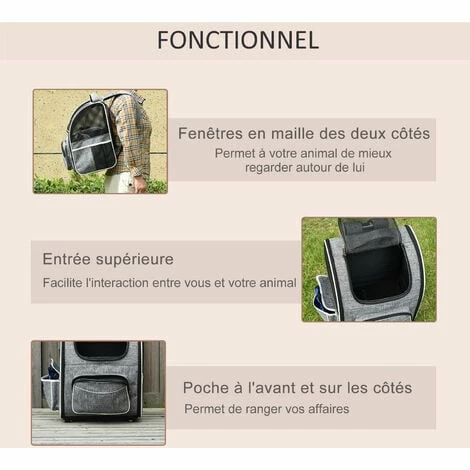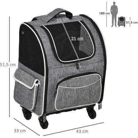 – Equipé de quatre roues universelles, ce sac pour animaux peut être utilisé à la fois comme trolley chariot et comme sac à dos