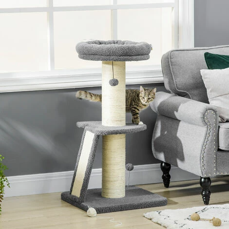 Ce superbe arbre à chat design coloris gris doté d’une plateforme, de 3 griffoirs, grattoirs, d’un panier d’observation et d’un jeu de 2 boules suspendues permettra à votre animal de jouer, se reposer, et s’épanouir pleinement.