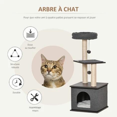 – Arbre à chat idéal pour que votre chat s’amuse, se repose et joue à volonté