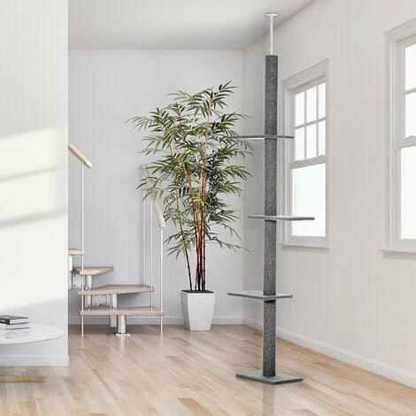 Votre boule de poils peut s’amuser tous les jours avec cet arbre à chat. Ce griffoir équipé de 4 niveaux de différentes tailles est le modèle idéal pour d’excellents moments d’amusement. Ce modèle de hauteur réglable de 2,28 à 2,60 mètres permet à votre petit compagnon de se dépenser ou de se faire les griffes sans avoir à s’attaquer à vos meubles. Grâce à sa conception avec des matières non toxiques, ce poteau à griffer est sans risque pour la santé de votre animal domestique.