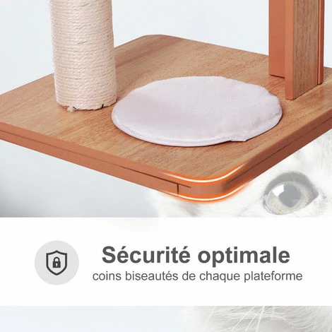– Arbre à chat centre d’activités variées : griffoir grattoir, niche, plate-formes et jeu de boule suspendue permettant à votre chat de jouer, faire ses griffes et de s’étirer