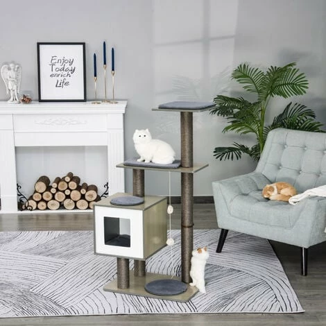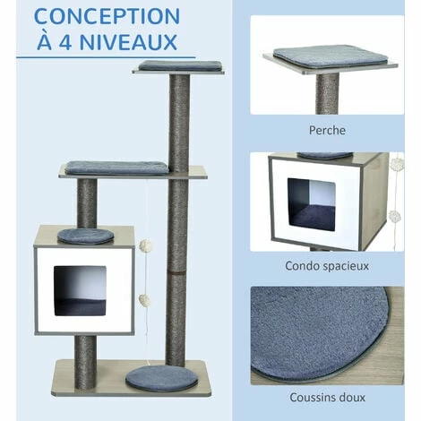 Ce magnifique arbre à chats design contemporain multi-équipé doté de griffoirs, grattoirs, d’une niche, de plate-formes et d’un jeu de boules suspendues permettra à votre chaton ou chat de se développer et de s’épanouir pleinement !