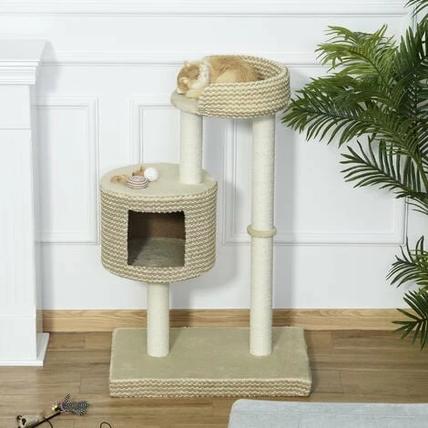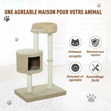 Ce magnifique arbre à chats style cosy chic bicolore beige café apportera une touche d’originalité et d’élégance supplémentaire à votre intérieur. Doté de griffoirs, d’une niche, d’une plateforme d’observation avec rebord, votre chaton ou chat pourra se développer et s’épanouir pleinement !