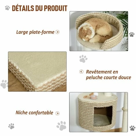 – Arbre à chat centre d’activités variées : griffoirs, niche, plateforme d’observation avec rebord permettant à votre chat de jouer, faire ses griffes et de s’étirer