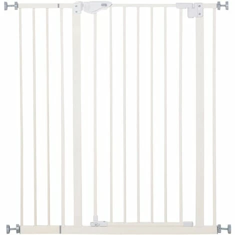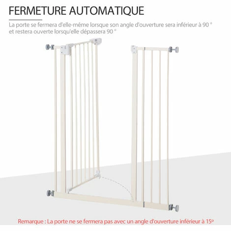 Cette barrière de protection est idéale pour portes et escalier d’une largeur comprise entre 72 et 82 cm. Elle vous permettra d’offrir un maximum de sécurité pour votre animal. Cette barrière de protection métallique se fixe par simple pression entre les cloisons ou encadrement de porte. Aucun perçage ni vissage requis. Caractéristiques : – Idéal pour les animaux domestiques et les empêcher d’accéder aux pièces de votre maison – Fabriquée en métal robuste et durable – Idéal pour une installation dans les encadrements de porte et en bas des escaliers – Compatible avec des ouvertures de 74-80 cm ou 91,5-97,5 cm – Le cadre en U à fixation par pression 4 points permet une fixation ferme – Système d’ouverture à double sens, système de double verrouillage, fermeture auto. lorsque l’angle d’ouverture de la porte est inférieur à 90° – Hauteur 1,04 m idéale pour éviter que votre animal ne passe par dessus – Montage facile et rapide : aucun perçage ni vissage requis – Note : barrière à installer sur les encadrements de la porte ou le mur Spécifications : – Couleur : blanc – Matériaux principaux : métal, plastique – Dim. totales : 86l x 104,1H cm (sans vis réglable mais avec pièce rallongée) – Longueur réglable (avec vis réglable) : 74-80 cm, 91,5-97,5 cm – Dim. porte : 68L x 104,1H cm – Dim. rallonge : 17,5L x 104,1H cm – Longueur entrée : 49 cm – Espacement barreaux : 5 cm – Livraison effectuée en un colis – Réf. : D06-095