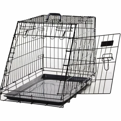 Protégez votre animal de compagnie ainsi que l’intérieur de votre véhicule a l’aide de notre cage de transport pour chien. Caractéristiques : – Cage de transport pour chien équipée d’une grande porte avant pour faciliter entrées et sorties de votre animal – Double loquet de verrouillage porte : sécurité optimale – Pliable pour vous faciliter son transport à vide et pour économiser de l’espace de rangement – Forme trapézoïdale adaptée à la plupart des véhicules – Fabriqué en métal (surface peinte en noir), robustesse pour une durée de vie pérenne – Plateau en plastique PP amovible, facile à nettoyer – Circulation d’air optimale pour votre chien – Facilité d’installation Spécifications : – Couleur : noir – Matériaux principaux : fil de fer, polypropylène – 2 tailles au choix : XL dim.93L x 58l x 65H cm ou L dim. 76L x 48l x 55H cm – Livraison effectuée en un colis – Réf. : D02-034/D02-034V01