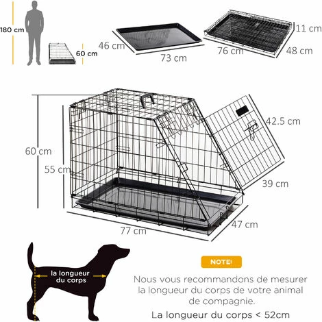 Soyez le premier à laisser votre avis sur “PawHut Cage De Transport Pour Chien Taille L Dim. 76L X 48l X 55H Cm Métal Noir” Annuler la réponse