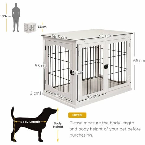 – Cage pour chien en bois MDF classe E1 peint en blanc avec grilles en métal époxy noir