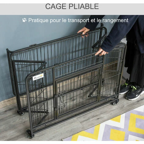 – Grande cage chien ou autre animal dim. 94L x 58l x 69H cm et grande capacité de charge, max. recommandée de 80 Kg