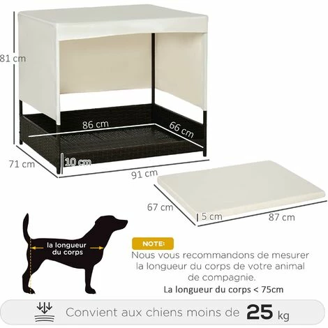 Ce magnifique canapé pour chien ou chat PawHut style cosy chic ajoutera une touche d’élégance supplémentaire à votre intérieur ! Fourni avec un confortable coussin d’une grande douceur, votre animal ne pourra plus se séparer de son lit. Grâce à son toit en toile, vous pourrez mettre ce lit sur pied pour chien aussi bien à l’intérieur qu’à l’extérieur.