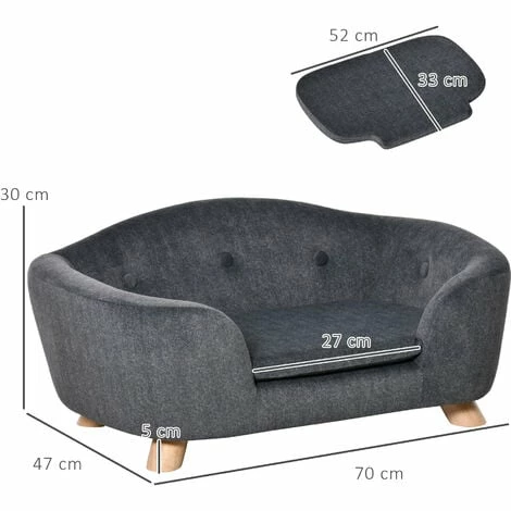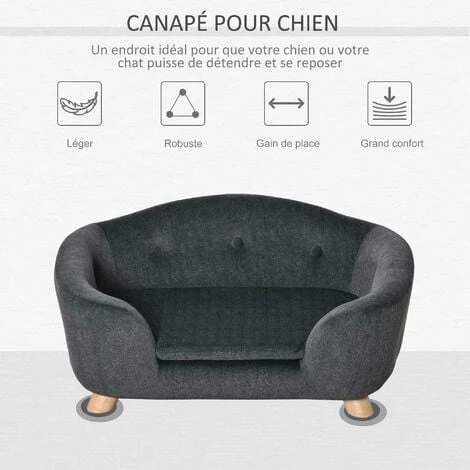 Ce magnifique lit canapé chien ou chat design scandinave ajoutera une touche d’originalité et de raffinement supplémentaire à votre intérieur ! D’une grande douceur et fourni avec un coussin, votre animal ne pourra plus se séparer de son lit !. Caractéristiques : – Lit canapé chien ou chat design scandinave coloris gris anthracite : idéal pour ajouter une touche d’originalité et de raffinement supplémentaire à votre intérieur – Convient aussi bien aux chiens qu’aux chats – Revêtement peluche courte 100% polyester d’une grande douceur – Coussin amovible grand confort garnissage mousse haute densité 28D fourni – Entretien facile, pratique à l’aide d’un éponge légèrement humide – Structure robuste en contre-plaqué, 4 pieds en bois de pin avec patins antidérapants : stabilité optimale, usage pérenne – Montage facile et rapide (manuel d’assemblage illustré fourni) Spécifications : – Couleur : gris anthracite – Matériaux principaux : contre-plaqué, peluche courte 100% polyester, mousse, bois de pin – Dim. totales : 70L x 47l x 30H cm – Dim. assise : 52L x 33l cm – Dim. coussin : 52l x 33l cm (épaisseur : 3 cm) – Hauteur pieds : 5 cm – Charge max. recommandée : 10 Kg (convient aux petits chiens) – Livraison effectuée en un colis – Réf. : D04-196CG