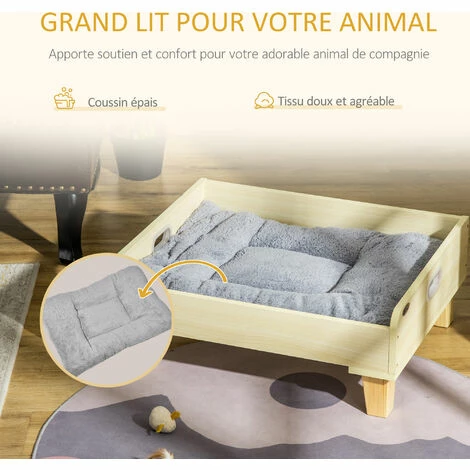 – Canapé panier chien ou chat style cosy naturel aspect bois clair : idéal afin d’ajouter une touche d’élégance supplémentaire à votre intérieur