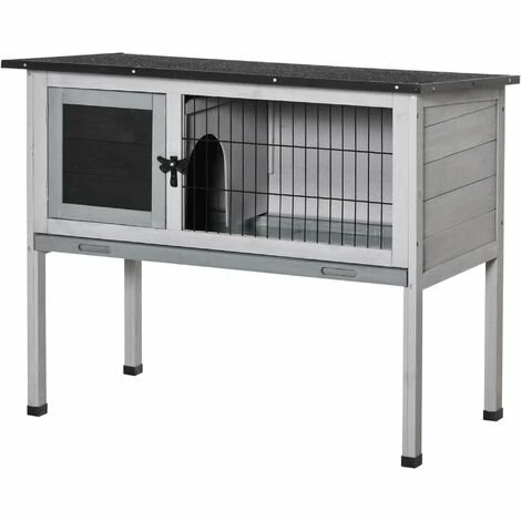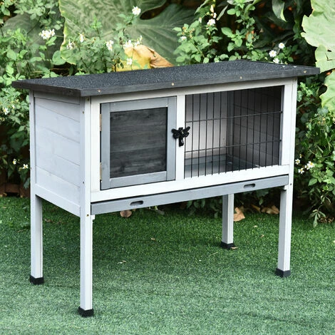 Ce superbe clapier à lapin sur pied dispose d’un espace mi-ouvert mi-fermé sécurisé idéal pour que vos lapins grandissent en toute sérénité tout confort ! Equipé d’un plateau coulissant à excréments, d’une porte verrouillable, d’un espace ouvert grillagé et d’un toit ouvrant, ce sera un plaisir de voir évoluer et s’épanouir vos lapins ! Caractéristiques : – Clapier à lapin sur pied coloris gris blanc noir très élégant – Offrez un grand espace de vie double (espace mi-ouvert mi-fermé avec fenêtre grillagée) pour le plus grand confort de vos lapins – Nombreux équipements : clapier sur pieds, niche avec grande entrée, plateau coulissant à excréments, porte verrouillable, toit ouvrant, etc… – Toit bitûmé afin d’abriter et de protéger au mieux vos animaux contre la pluie, le vent, les prédateurs, etc… – Tiroir à déjection coulissant avec revêtement zinc et toit ouvrant avec compas de blocage : entretien facile du clapier pour le bien-être de votre animal – Conception et fabrication avec des matériaux de qualité, usage pérenne – Bois de pin pré-huilé avec revêtement peinture hydrofuge – Cage grillagé anticorrosion : aération, surveillance optimale Spécifications : – Couleurs principales : gris, noir, blanc – Matériaux principaux : bois de sapin, fer – Dim. totales : 86L x 45l x 70H cm – Dim. niche : 86L x 45l x 38H cm – Dim. porte bois : 26l x 26H cm – Dim. fenêtre grillagée : 38l x 26,5H cm – Dim. tiroir à déjection : 73L x 36l cm – Hauteur pieds : 31,6 cm – Livraison effectuée en un colis – Réf. : D51-119GY