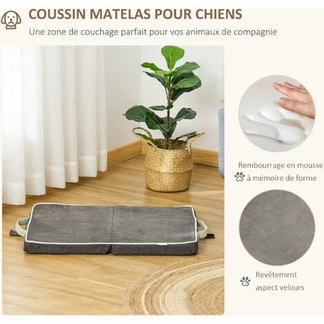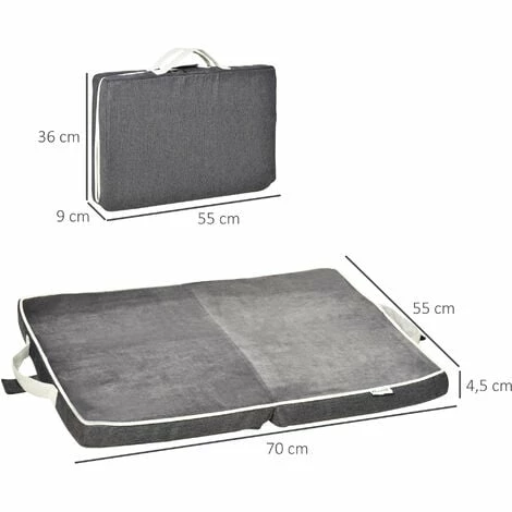 Ce magnifique coussin pour chien de PawHut conçu et fabriqué à partir de tissu polyeter avec rembourrage épais et revêtement en velours douce sera très confortable pour votre animal. Sans oublier sa fermeture éclair lui permettant d’être déhoussable pour un lavage facile en machine à laver ! Confortable, esthétique et pratique, un lit à acquérir de toute urgence ! Caractéristiques : – Convient aussi bien aux chiens qu’aux chats, la zone de couchage idéale pour votre animal – Taille compacte pour s’intégrer dans n’importe quelle pièce – Coussin pour chien rembourré de mousse à mémoire haute densité et le revêtement en velours douce et agréable au toucher pour un grand confort d’utilisation – Pliable et portable grâce à la poignée intégrée, facile à ranger et à transporter – Housse zippée du coussin amovible et lavable em machine pour un nettoyage et entretien faciles – Convient aux chiens de petite et moyenne taille, de moins de 18 kg et d’une longueur de corps ne dépassant pas 65 cm Spécifications : – Couleur principale : gris – Matériaux principaux : imitation lin (100% polyester), velours hollandais (100% polyester), mousse à mémoire de forme – Dim. dépliées : 70L x 55l x 4,5H cm – Dim. pliées : 55L x 36l x 9H cm – Charge max. recommandée : 18 kg – Réf : D04-201
