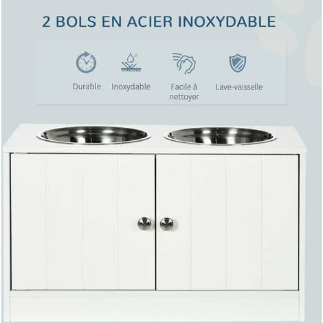 Améliorez la posture et digestion de votre chien avec ce superbe porte-gamelles surélevé ! Doté de 2 gamelles en acier inox. avec armoire 2 portes, votre animal pourra manger et boire en tout confort.