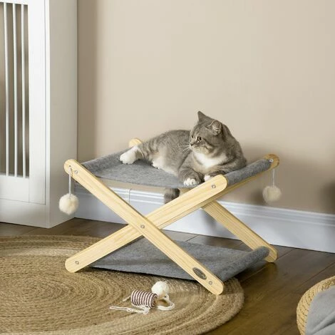 Succombez pour ce joli lit/hamac pliable pour chat PawHut en feutrine et bois. Votre chat y passera d’agréables moments. Cet abri contemporain pour chats offre un havre de paix confortable pour que votre matou puisse jouer et se reposer. Il est doté d’une surface en tissu feutré doux et durable pour que votre animal puisse se détendre.