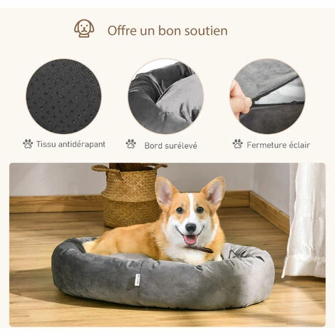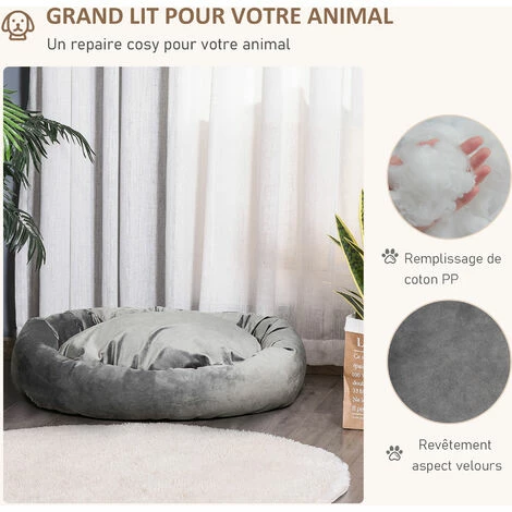 Ce lit pour animaux de compagnie Pawhut offre un environnement sécurisé à nos fidèles amis chatons et chiots. Vos petits amis à fourrure se sentiront entourés de l’amour et de la chaleur depuis la surface en velours, leur permettant de vivre un sommeil vraiment réparateur pour se détendre et faire de beaux rêves sur ce lit pour chien de luxe. La housse zippée est en velours et rembourrée de fibres de coton PP douces. Comprend un coussin lavable à fermeture à glissière, facile à entretenir. Caractéristiques : – Offre à votre chien une bonne nuit de sommeil avec ce luxueux lit pour animal de compagnie – Le rembourrage en coton PP épouse le corps de votre animal pour offrir un soutien maximal – Housse en velours hollandais doux dans un travail exquis – Housse et coussin zippés amovibles et lavables en machine pour un entretien facile – Un espace de couchage parfait pour les chats et les chiens, et s’intègre facilement dans le coin de n’importe quelle pièce – Convient pour les chiens de taille moyenne jusqu’à 20 kg et la longueur du corps ne dépassant pas 70 cm Spécifications : – Couleur : gris foncé – Matériaux : velours hollandais, coton PP – Dimensions totales : 81,5L x 58l x 18H cm – Dimensions intérieures : 58L x 37l x 8H cm – Epaisseur du dessous du tapis : 10 cm – Réf. : D04-205