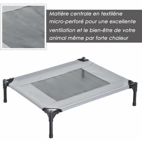 Description : Ce superbe lit sur pied bicolore gris clair noir avec velum en forme de dôme apportera une touche d’originalité, de modernité et d’élégance à votre espace intérieur ou extérieur. Ce lit apportera un confort inégalé à votre chien même pendant les fortes chaleurs de l’été ! Caractéristiques : – Lit sur pieds pour chiens chats idéal pour une utilisation intérieure ou extérieure (terrasse, jardin) – Equipé d’un velum en forme de dôme très élégant en taffetas imperméable et amovible pour un maximum de confort – Matière centrale de dernière génération en textilène micro-perforé pour une excellente ventilation et le bien-être de votre animal même par forte chaleur – Contour en tissu oxford avec revêtement PVC, durable et facile à nettoyer – Châssis en métal époxy anticorrosion robuste pour un usage pérenne en toute sécurité – Lit sur pieds surélevé idéal pour tenir votre chien à l’écart de l’humidité éventuelle du sol et des insectes : confort optimal de repos pour votre animal – Sac de transport fourni pour un rangement et déplacement facile et pratique – Patins antidérapants installés sous chaque pied : stabilité optimisée même si utilisation sur du parquet ou carrelage – Attention : veuillez bien mesurer la taille de votre chien avant d’acheter Spécifications : – Matériaux principaux : métal époxy anticorrosion, tissu oxford, textilène et taffetas – Couleurs : gris, noir – Dim. totales : 61L x 46l x 61H cm – Hauteur du lit : 18 cm – Accessoires fournis : un sac de transport + un parasol/voile ombrage – Charge max. recommandée : 10 Kg – Livraison effectuée en un colis – Réf. : D04-057