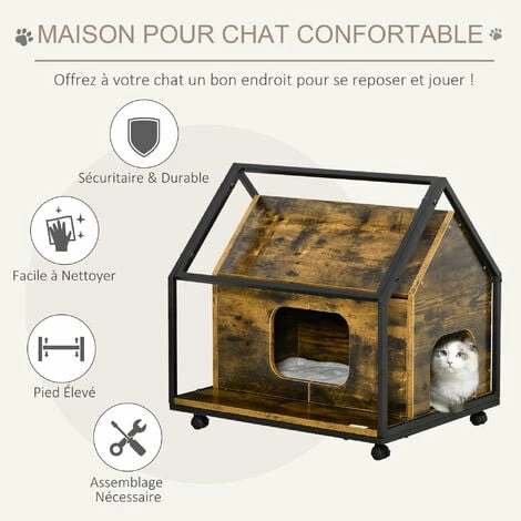 – Maison pour chat dotée d’une double porte ouvrable et d’une sortie