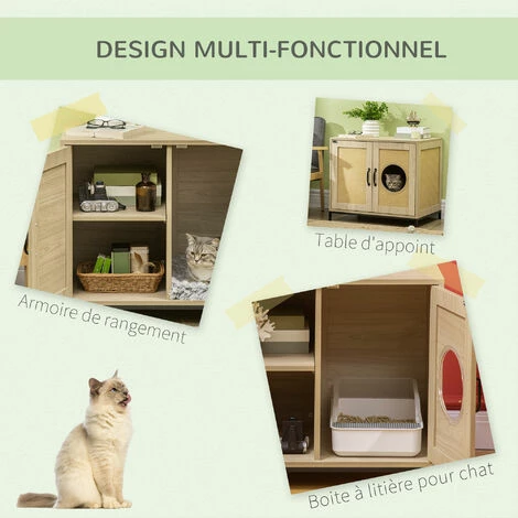 – Conception de qualitĂ© : grande entrĂ©e, placard double porte, rangement latĂ©ral divisĂ© en 2 niches, grand plateau supĂ©rieur, votre chat se sentira comme Ă la maison