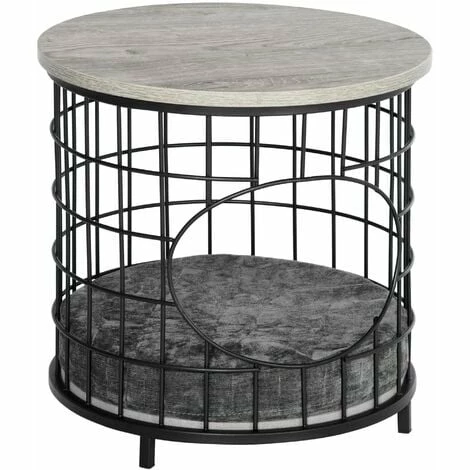 Ce panier pour chat table basse 2 en 1 style industriel cosy fourni avec un coussin amovible permettra à votre chat de se reposer en toute tranquillité. Son plateau rond en panneaux de particules aspect bois gris pourra faire office de petite table basse d’appoint idéale pour déposer un ou 2 verres, télécommandes, etc.