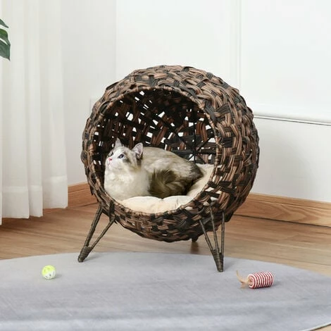 Fabriqué en résine tressée imitation rotin et fourni avec un grand coussin en coton d’une grande douceur, ce panier pour chat deviendra rapidement son petit coin repos préféré ! Grâce à son design original en forme de boule, ce panier attirera fortement votre chat et ajoutera une touche d’originalité et de rafinement supplémentaire à votre intérieur.
