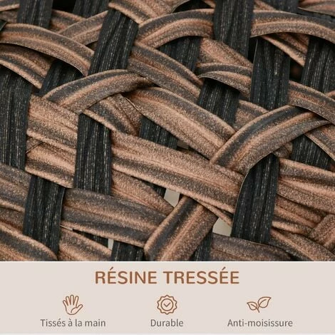 – Fabriqué en résine tressée imitation rotin assurant légèreté et perméabilité à l’air
