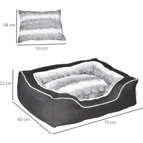 Ce magnifique lit panier pour chien de PawHut conçu et fabriqué à partir de tissu polyeter avec rembourrage épais et revêtement supérieur en peluche douce sera très confortable pour votre animal. Sans oublier sa fermeture éclair lui permettant d’être déhoussable pour un lavage facile en machine à laver ! Confortable, esthétique et pratique, un lit panier à acquérir de toute urgence ! Caractéristiques : – Convient aussi bien aux chiens qu’aux chats – Taille compacte pour s’intégrer dans n’importe quelle pièce – Panier pour chien doté d’un coussin épais rembourré de coton haute densité et le revêtement en peluche douce et agréable au toucher pour un grand confort d’utilisation – Le lit pour chat et chien avec une base en tissu antidérapant pour assurer une meilleure stabilité et empêcher le lit de glisser lorsque votre animal est excité – Coussin déhoussable et lavable en machine afin de vous en faciliter son entretien et de pérenniser son usage – Convient aux chiens de petite et moyenne taille moins de 16 kg et la longueur de son corps ne doit pas dépasser 55 cm Spécifications : – Couleurs principales : noir, gris, blanc – Matériaux principaux : imitation lin (100% polyester), peluche, coton PP – Dim. totales : 75L x 60l x 22H cm – Dim. coussin : 50L x 38l x 10H cm – Dim. interne (coussin inclus) : 40L x 35 x 14H cm – Épaisseur côté (sans coussin) : 17,5 cm – Réf : D04-204