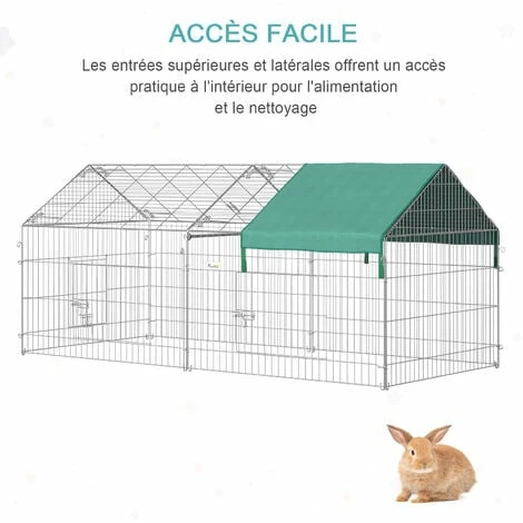 Ce joli parc enclos dim. 2,20L x 1,03l x 1,03H m (bâche incluse) pour lapins ou autres petits animaux qui leur permettra de profiter d’un espace clos sécurisé, abrité à l’extérieur.