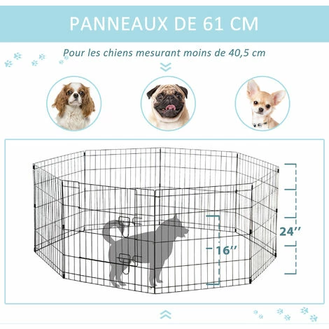 Ce parc enclos noir en mĂ©tal est idĂ©al pour votre animal de compagnie. Il est facile Ă installer et permet Ă votre animal d’avoir un espace propre Ă lui. La sĂ©curitĂ© y est assurĂ©e parce que la cage a une porte avec un double verrou. Vous pouvez donc garder votre chien Ă l’intĂ©rieur pendant que vous vous attelez Ă d’autres tâches.