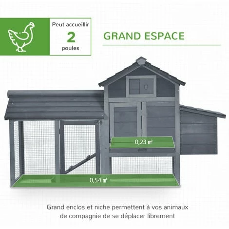 – NOTE : petit poulailler recommandé pour 2 poules taille adulte maximum